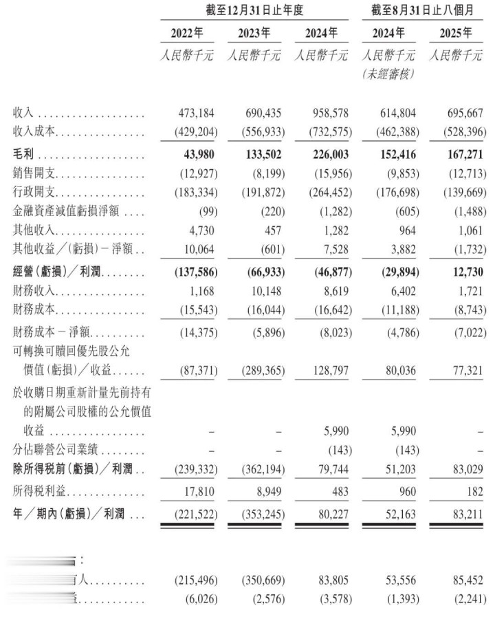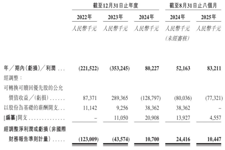 卓正医疗2022年、2023年、2024年经调整净利分别为-1.23亿、-4357万元、1070万元;2025年前8个月经调整净利为1045万元,上年同期的经调整净利为2442万元。