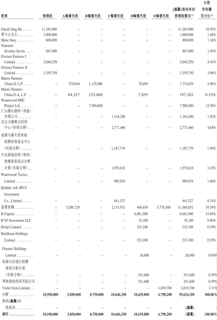 IPO后,Cheuk Sing Ho持股为17.52%,曹少山持股为1.55%,Nineteen Seventy-Seven持股为1.35%,Distinct Partners I Limited持股为4.1%,Distinct Partners II Limited持股为3.67%;